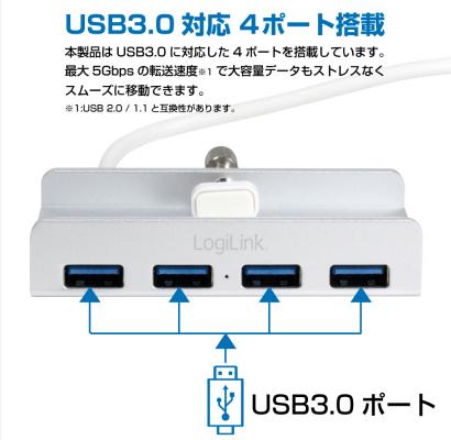 主要機能:USB3.0対応 4ポート クランプハブ