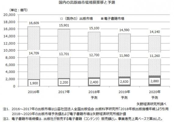 ~2018年の出版市場は前年比7.3%減も、電子書籍市場は前年比9.1%増の見通し~