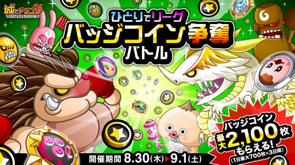 株式会社アソビズム(本社:東京都千代田区、代表取締役:大手智之)は、App Store・Google Playにて好評配信中の『城とドラゴン』で2018年8月30日(木)より「リーグ」および「ひとりでリーグ バッジコイン争奪バトル」を開催いたします。リーグに挑み、豪華報酬をゲットしましょう!
