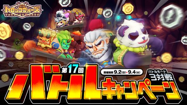 株式会社アソビズム(本社:東京都千代田区、代表取締役:大手智之)は、LINE株式会社(本社:東京都新宿区、代表取締役社長:出澤 剛 以下LINE)との共同タイトル『LINE トロッコウォーズ』で、2018年9月2日(日)より「第17回バトルキャンペーン」を開催いたします。「第17回バトルキャンペーン」は全国のユーザーと競い合い、勝利を重ねて上位ランクを目指すイベントです。今回のバトルキャンペーンはバトルモード「3対戦」での開催となります。本キャンペーンに参加すると、到達したランクに応じた報酬を手に入れることができます。育てたハンターで腕を競って、大量の報酬を手に入れましょう!