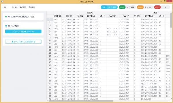 『NEEDLEWORK』は、ファイアウォールの通信テストを自動で実施することができる小型のアプライアンスです。全ての通信テストは本製品が自動処理するため、人的ミスを限りなく「ゼロ」にするとともに、通信テストに携わるエンジニアにとって大きな負担となっていたテスト工数を大幅に削減します。