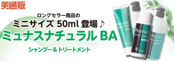 プロ向け美容材料の通信販売サイト「美通販」が、ロングセラーを続ける人気のヘアケア『ミュナス ナチュラルシャンプー&トリートメント BA(ベーシック)』(株式会社レイナカンパニー)に新しく加わったミニサイズ50mlの取扱いを開始しました。