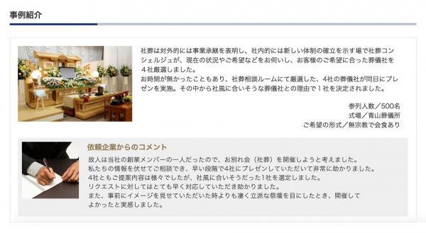 「いい葬儀」の社葬専用ページ「社葬・お別れ会のすべて」
