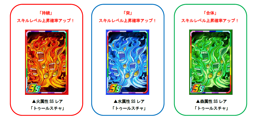 「混沌P」を使い、素材ガチャを回すと、限定の強化素材「トゥールスチャ」を手に入れることができます。「トゥールスチャ」は経験値がアップするだけでなく、一部のスキルレベル上昇確率もアップします。