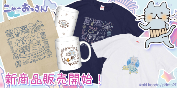 集英社「りぼん」で連載中の漫画キャラクター「ニャーおっさん」がカワセル限定商品としてグッズ販売を開始いたしました。「ニャーおっさん」のデザイン・作画は「モフィ」や「リラックマ」を生み出したコンドウアキ先生。Twitterフォロワーは四千人を突破し、昨年は中国イベントにも出展するなど大活躍中のキャラクターとなっております。今回はグッズ第一弾として、Tシャツとマグカップ、トートバッグが発売。使いやすいデザインでどんなシーンにもばっちり!是非、ファンの方には目を止めていただきたい商品です。