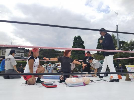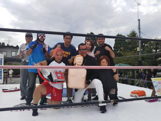 AED体験コーナーにはセンダイガールズプロレスリングの選手も参加してくれました。