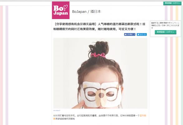 「心からほっとする健康と癒し」をコンセプトに商品を展開する株式会社ほんやら堂(本社:群馬県高崎市 代表取締役:藤永辰美)は、株式会社アライドアーキテクツが運営する知日サイト「Bo!Japan(播!日本)」を利用して「ながら温アイマスク」のモニター・キャンペーンを9月19日から開始しました。
