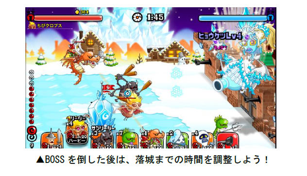 9月22日(土)より、討伐イベント「氷の女王」で難関ステージ「おまけ級」の追加や、ステージ8・ステージ10・ステージ12で、敵の城を残り時間10秒以下で落城し、★3クリアするとドラゴンメダルがもらえる「討伐ギリギリ落城ミッション」を開催いたします。また、各ステージを★3クリアすると基本獲得キーンが1.5倍になる「キーン中盛りキャンペーン」も同時開催いたします。