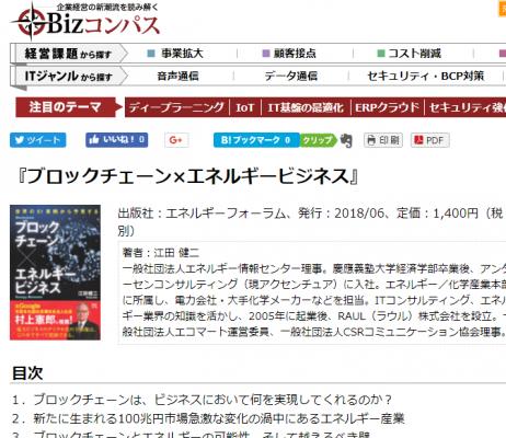 企業経営の新潮流を読み解くサイトBizコンパス(https://www.bizcompass.jp/ NTTコム オンライン・マーケティング・ソリューション株式会社が運営)にて、RAUL株式会社代表・江田健二の書籍「ブロックチェーン×エネルギービジネス」が紹介されました。 2018年9月21日 https://www.bizcompass.jp/books/343.html