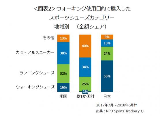 直近1年計(2017年7月~2018年6月 13歳以下を除く)にウォーキング使用目的で購入されたスポーツシューズのカテゴリーについて調べました(図表2)。
