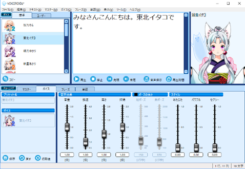 『VOICEROID2 東北イタコ』は、声優・木戸衣吹さんの声を元に、エーアイの誰の声でも短時間の収録で音声合成用のオリジナル日本語音声辞書を作成できるサービス「AITalk(R) CustomVoice(R)」を利用して製作した、入力文字読み上げソフト『VOICEROIDシリーズ』の最新版です。ナレーションのような通常の読み上げに加え、「セクシー」「パワフル」「あたふた」のスタイルに対応しており、より感情豊かな文章読み上げが可能です。