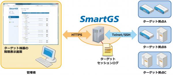 「SmartGS」は、ネットワーク機器やサーバーへのTelnet/SSHアクセスを管理するソフトウエアです。これまではアクセスする機器をターゲットリストから検索して絞り込む必要がありましたが、今回の機能追加によってターゲットリストの階層表示が可能となりました。「設置場所」「用途」「カテゴリー」といった情報が対象機器と共に表示されるため、管理UIの視認性と利便性が向上します。