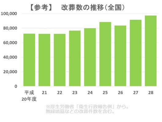 全国の改葬件数は年間約10万件で、増加傾向にあります。