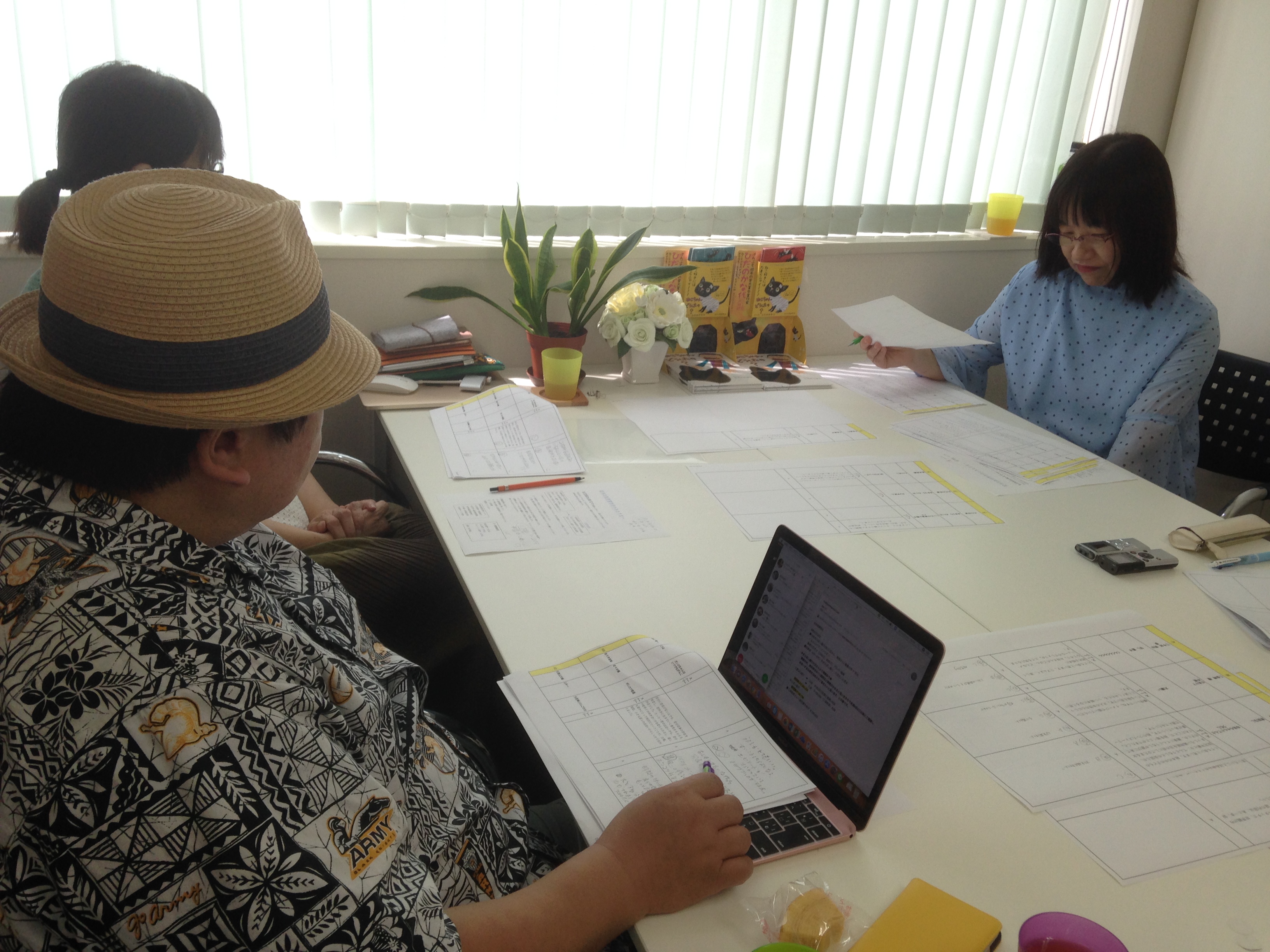写真:大賞作「やまもとさんちのにゃまもとさん」と審査会の様子。