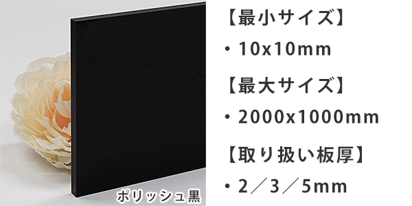 アクリル・ポリカ材料とアクリル製品の販売サイト「アクリ屋ドットコム」を運営する、株式会社さくら樹脂(所在地:神奈川県横浜市、代表取締役:須藤裕)は、ご要望の多かった『ポリッシュ黒(一般)』を追加し、その他の色板最小サイズを見直して、2018年10月2日より、注文ページを公開致しました。