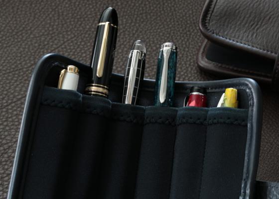 2.ネオプレーンがペンを一本一本ホールドし、大事な万年筆も安心して持ち運べます。