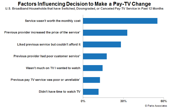 従来の有料テレビの加入者数は落ち込んでおり、事業者は加入者の解約を最小限にとどめようと必死になっている。米国調査会社パークスアソシエイツ社(Parks Associates)の調査レポート「有料テレビの解約と保持」は、有料テレビプロバイダの解約の現状を査定し、特にコードカッティング、コードネバー、新しいOTT(オーバーザトップ)動画サービスの影響、乏しいバンドル、解約のきっかけ、効果的な顧客保持のツールなどについて記載している。