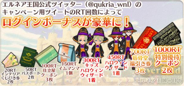 スマートフォン版『ワールドネバーランド エルネア王国の日々』にて、期間中に公式ツイッターの「キャンペーン用ツイート」のリツイート数(RT数)に応じてログインボーナスの内容が豪華になっていきます。スマートフォン版はNintendo Switch版へのインポートや、キャラクターの移住が可能ですのでパッケージ版購入予定の方もお楽しみいただけます。