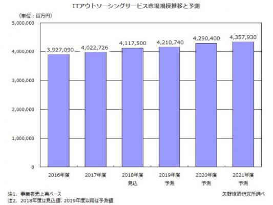 2018年度のITアウトソーシングサービス市場規模は前年度比102.4%、4兆1,175億円の見込