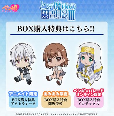 2018年10月15日 アニメ&ゲームのグッズ販売を手がける株式会社ペンギンパレード(本社:東京都)は、TVアニメ「とある魔術の禁書目録III」の ぺたん娘トレーディングアクリルストラップ を発表し、全国での予約受付を開始しました。