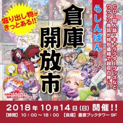 全国40店舗以上の中古アニメショップらしんばん(https://www.lashinbang.com/)を展開する株式会社らしんばん(本社:東京都豊島区、以下らしんばん)は、2018年10月14日(日)に「らしんばん倉庫開放市」(https://www.lashinbang.com/campaign_fair/416490/)を開催いたします。