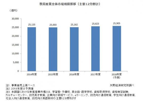 株式会社矢野経済研究所(代表取締役社長:水越孝)は、国内の教育産業市場を調査し、サービス別の動向、参入企業動向、将来展望を明らかにいたしました。