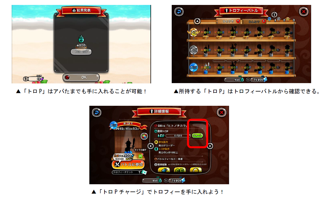 ※通常のトロフィーバトルからも、これまで通り各キャラのトロP は獲得可能です。