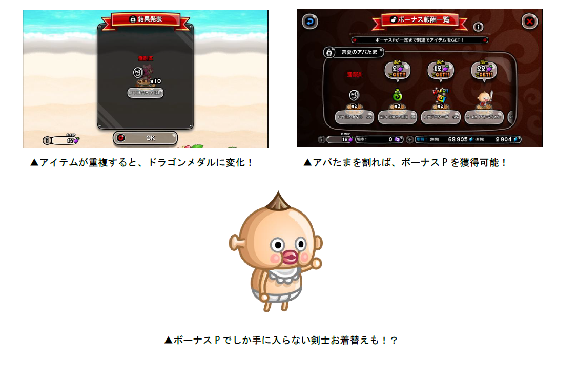 「アバたま」は能力値の上昇しないアバターなどのアイテムが獲得できる「ガチャ」形式の新機能です。