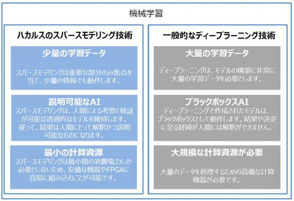 「HACARUS-X」は、現在の主流であるディープラーニング技術を使わない軽量な人工知能パッケージで、少ないデータから特徴を抽出することに優れるスパースモデリング技術を機械学習に応用したものです。