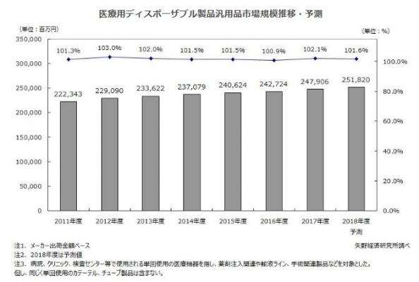 2017年度の国内医療用ディスポーザブル製品汎用品市場は前年度比2.1%増の2,479億6百万円