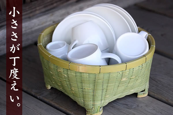 お一人様の茶碗かご(丸)は、コンパクトでもたっぷり入る食器かご。水切りラックやキッチン収納に大活躍します。丈夫な竹表皮を活かし、均等な竹ひごでみっちり編み込まれていますので、頑丈で実用性も高いのです。