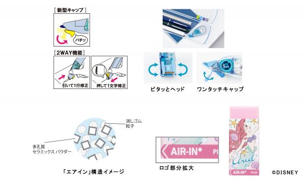 プラス株式会社(東京都港区 代表取締役社長 今泉公二)は、修正テープ「ホワイパーPT」「ホワイパープチ」、消しゴム「エアイン」から、アリエル、くまのプーさん、エイリアンなど人気のキャラクターたちが大集合した「ディズニーコレクション<数量限定>第11弾」を2018年11月6日に発売します。