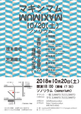 スリーシェルズ所属の磯部英彬プロデュースによる楽器と電子音響の極限の出逢い「マキシマム」が10月20日に開催されることをスリーシェルズは10月18日に発表した。