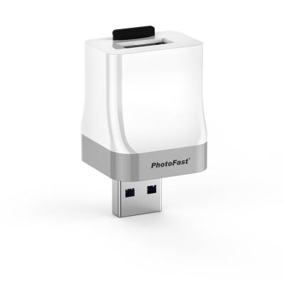 PhotoCubeは、最新のiPhone、iPad、iPod touchに対応したiOS専用、充電と同時にバックアップをするmicroSDカードリーダーです。最大400GBまでのmicroSDXCカードに対応、USB 3.1接続による高速データバックアップを実現、対応するUSB ACアダプターやモバイルバッテリー等に接続することで、データをバックアップしながら急速充電することが可能です。