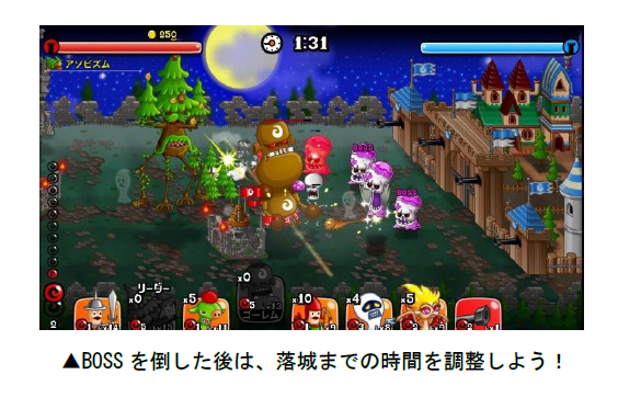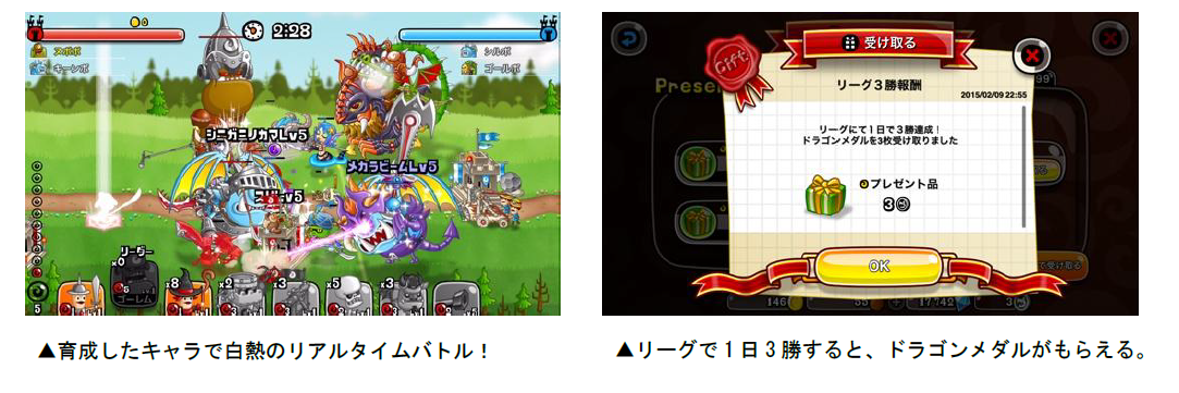 10月19日(金)より、全国のユーザーたちを相手にリアルタイムで戦い、ランキングを競いあう「リーグ」が開催!ひとりで挑戦できるのはもちろん、友達と一緒にタッグ・トリオ戦にも挑むことができます。また、今回のリーグは引き分けがなくなり、「判定勝利」「判定敗北」で必ず勝敗が決まる、「完全決着バトル」で行われます。試合終了時に城壁のHPが同じ場合でも、砦の占拠数などで必ず勝敗が決まりますので、最後まで油断せずにバトルに挑みましょう!