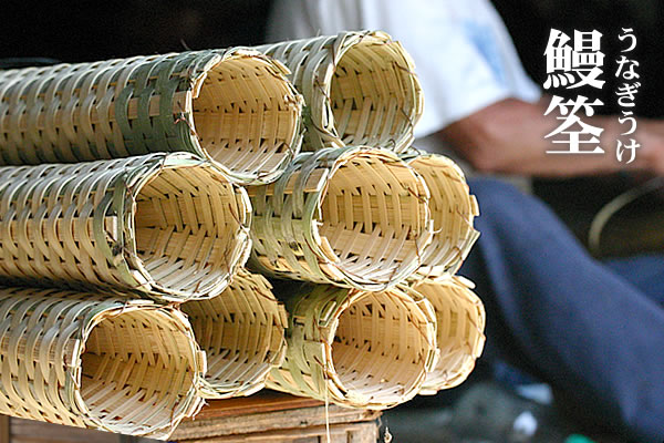 うなぎうけの製作を紹介するweb動画「【竹虎】うなぎうけ(鰻筌)熟練の技Bamboo crafts」が公開されました。魚を捕まえる仕掛け部分の製作から筒の編み込み、仕掛けの取り付けまで、製造の流れが分かる1分動画です。