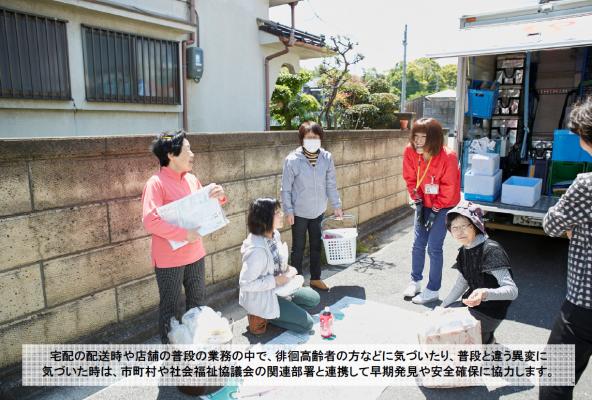 生協の宅配事業において、配送担当者が高齢者の何らかの異変を発見した場合には、羽曳野市に状況を報告します。