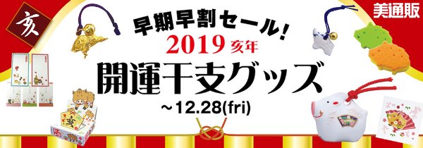 プロ向け美容材料の通信販売サイト「美通販」は、年末年始のご挨拶に最適な『2019亥年・開運干支グッズ』キャンペーンを開催いたします。サロン様からお客様へ、感謝の気持ちを伝えるのにぴったりな開運干支グッズと、貰って嬉しいミニギフトをピックアップし、業界最安値を目指した美通販特別価格でご提供いたします。