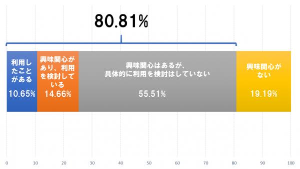 そもそも、乳幼児教育(注;ここでは通信教育)について、現代のママパパ達はどのくらい実践しているのだろうか。「乳幼児向け通信教育に関して、最もあてはまる選択肢をお選びください」という質問に対し、「利用したことがある」と回答した人は10.65%、「興味関心があり、利用を検討している」は14.66%、「興味関心はあるが、具体的に利用を検討はいない」は55.51%となった(図1参照)。この結果からわかる通り、利用経験がある、もしくは興味関心をもっている人は全体の約8割にも上るが、実際に利用している人は約1割にとどまる。