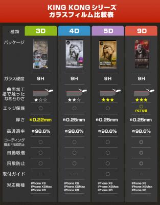 最新のiPhone XS / XR / XS Maxに対応した「KING KONG 4D」は、衝撃や操作時の傷からスマホの液晶画面を守る9H強化ガラス液晶保護フィルムです。2Dや3Dより滑らかで感度や操作性も損ないません。油分や指紋などの汚れを防ぐコーティングや、飛散防止加工済み、静電気による自動吸着の気泡対策、98.6%の高透過率フィルムでiPhoneのもつ美しさを余すところなく伝わります。