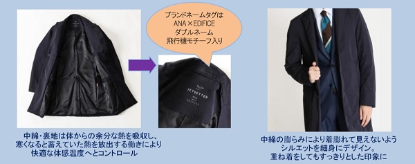 全日空商事株式会社(本社:東京都港区、代表取締役社長:西村 健)は、運営するANA公式ECサイト「ANA STORE(エーエヌエーストア)/ANA(エーエヌエー)ショッピング A-style(エースタイル)」(http://www.astyle.jp/)にて、人気ファッションブランド「EDIFICE(エディフィス)」とANAのコラボレーションによる『ANA×EDIFICEポケッタブルチェスターコート』を11月1日より販売いたします。