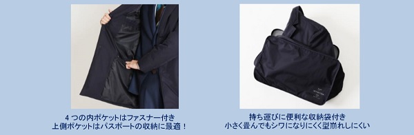 「ANA×EDIFICE」は、「ビジネスマンの旅とファッション」をテーマにした『JETSETTER PROJECT』企画として実現したコラボです。第1弾として2018年3月に販売した『ポケッタブルイージーセットアップスーツ』は、ストレッチ性のある機能素材により伸縮性に優れ、長時間の飛行機移動でもシワになりにくく型崩れもしにくいことから、出張にも旅行にも活躍するとして大変反響をいただき、初回入荷分は発売と同時に完売となりました。(※現在は再販売中です。)