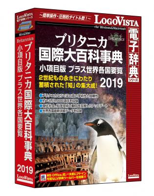 ロゴヴィスタ株式会社は、パソコン用電子辞典において絶対なる信頼と実績を誇るベストセラー「LogoVista電子辞典シリーズ」の新作として、ブリタニカ・ジャパン株式会社との連携により、『ブリタニカ国際大百科事典 小項目版 プラス世界各国要覧 2019』(DVD-ROM版)を、2018年11月30日(金)よりパソコンショップ、カメラ系量販店、大手書店、ダウンロード販売サイトなどで発売いたします。