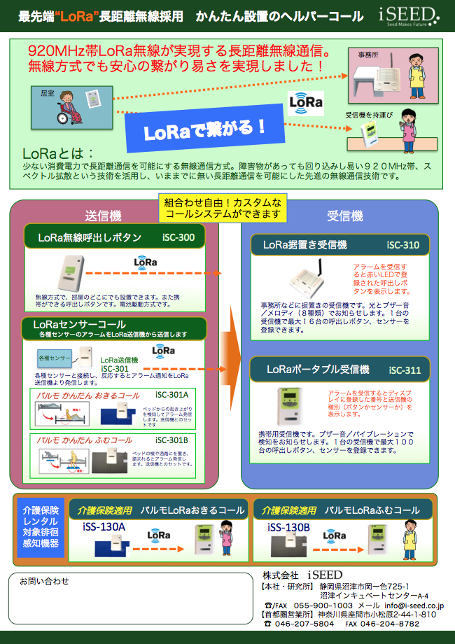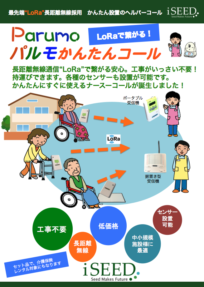 介護福祉向けシステムのITベンチャーiSEED(代表取締役 井澤庄次)は中小規模の介護施設に最適な、無線方式のナースコール「パルモかんたんコール」を11月1日より発売開始したと発表しました。