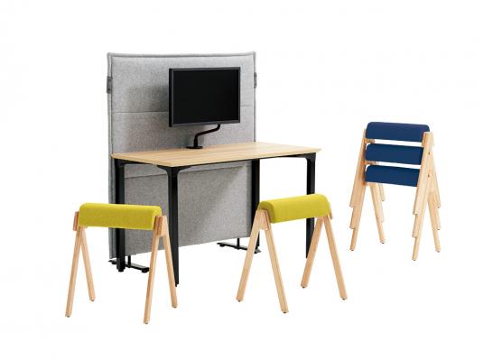 執務スペースとラウンジエリアの間などに設置し、音や視線をやわらかく遮断する簡易パネル。フェルト製の連結部材でパネル同士を簡易的に連結することも可能です。
