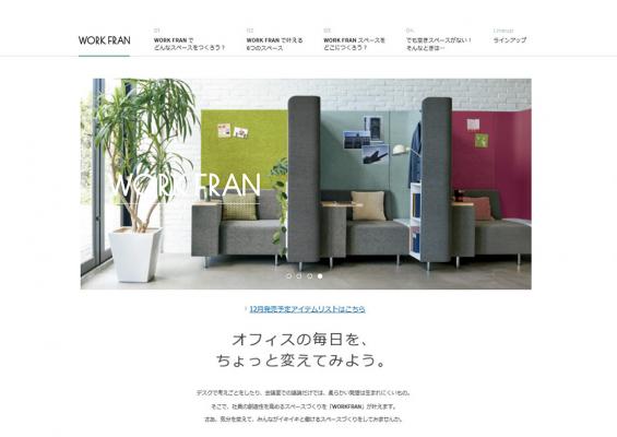 また、今回のアイテム拡充に合わせ、「ワークフラン」のwebサイトをリニューアルオープン。「ワークフラン」の導入方法や、目的やスペース規模に応じたレイアウトプラン、導入効果などをご紹介します。