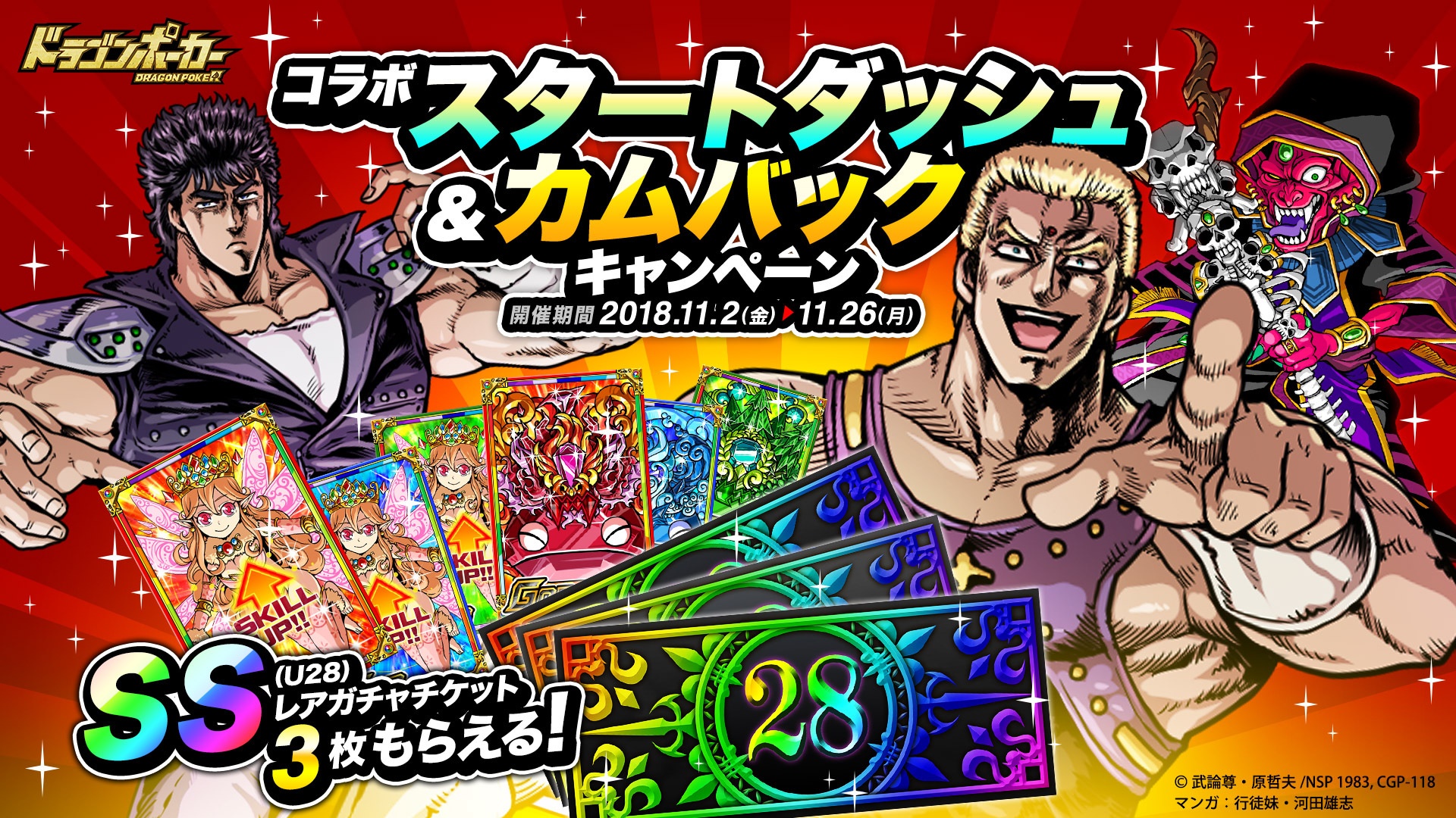 『北斗の拳 イチゴ味』コラボ記念「コラボスタートダッシュ&カムバックキャンペーン」開催!ログインした方全員に、竜石最大63個プレゼント!友達を誘って、ドラゴンポーカーを楽しみましょう!
