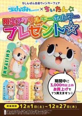 名称:らしんばん全店ウィンターフェア らしんばん×ちぃたん☆限定アクリルキーホルダープレゼント☆