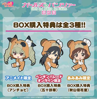 2018年11月6日 アニメ&ゲームのグッズ販売を手がける株式会社ペンギンパレード(本社:東京都)は、劇場版アニメ「ガールズ&パンツァー最終章」の ぺたん娘トレーディングラバーストラップVol.2 を発表し、全国での予約受付を開始しました。
