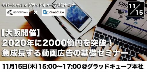 株式会社グラッドキューブ(本社:大阪市中央区 代表取締役CEO 金島 弘樹 以下:グラッドキューブ)とモバーシャル株式会社(本社:東京都渋谷区、代表取締役 CEO 竹内 圭、以下モバーシャル)は、9月14日(金)に東京で開催した「2020年に2000億円を突破!急成長する動画広告の基礎セミナー」を大阪でも開催します。